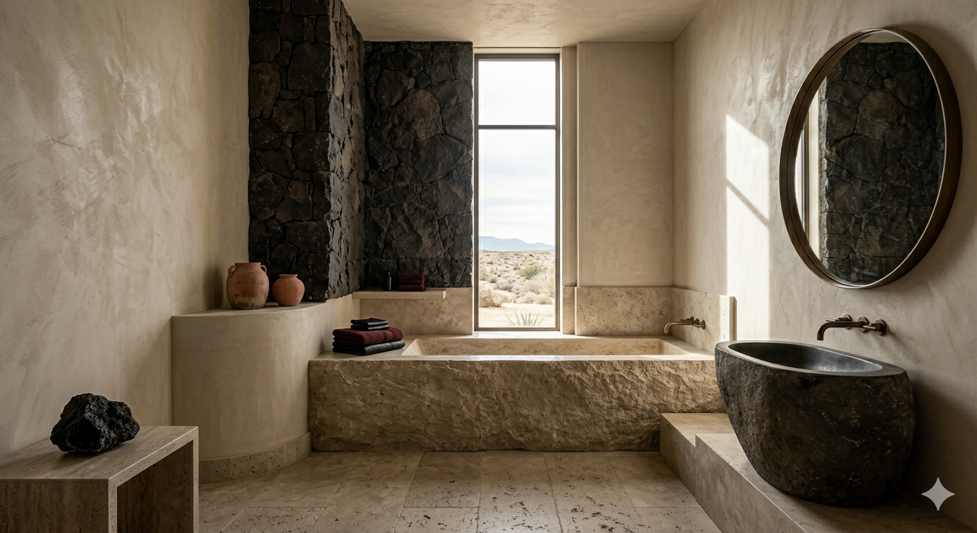 • Natural Stone: Honed, never polished. While a honed finish allows the eye to appreciate the deep materiality of the stone, it also invites The Ritual of Care, a commitment to the intentional maintenance that preserves such a foundational anchor.